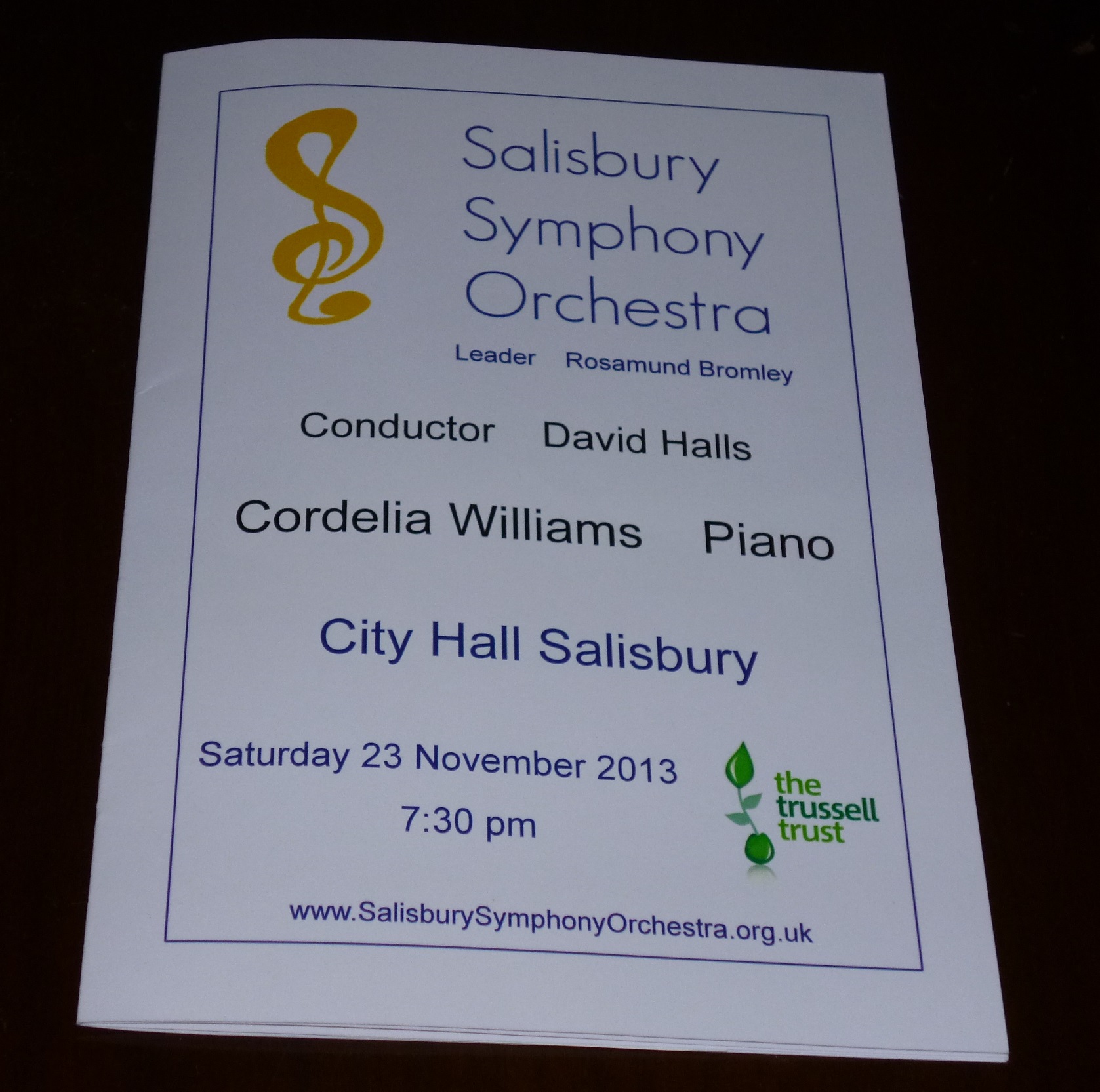 I did wonder about going, because the last time I went to one of their concerts was more than 10 years ago, when they were called the Salisbury Orchestral Society.  They were playing something which might have been a horn concerto and certainly had a lot of horn playing.  I was supporting a different friend and she warned me that it was bad – it was!  The pieces chosen were much too difficult for the ability of the orchestra, the horns were terrible and the rest was not brilliant either.  They must have been fairly bad for me to notice!  The orchestra is “amateur” but has a lot of players who have been professional or who are music teachers and I think that has always been the case.  When I last heard them, they had quite a lot of young players but there were very few now.  I wonder how the less good ones were “weeded out”?  The programme said that “all our members are accomplished amateur musicians, mostly from the Salisbury area, although some travel considerable distances to play with us”.  They seem to have gone for quality, at the cost of bringing on young musicians.  I suppose that is a choice one has to make.