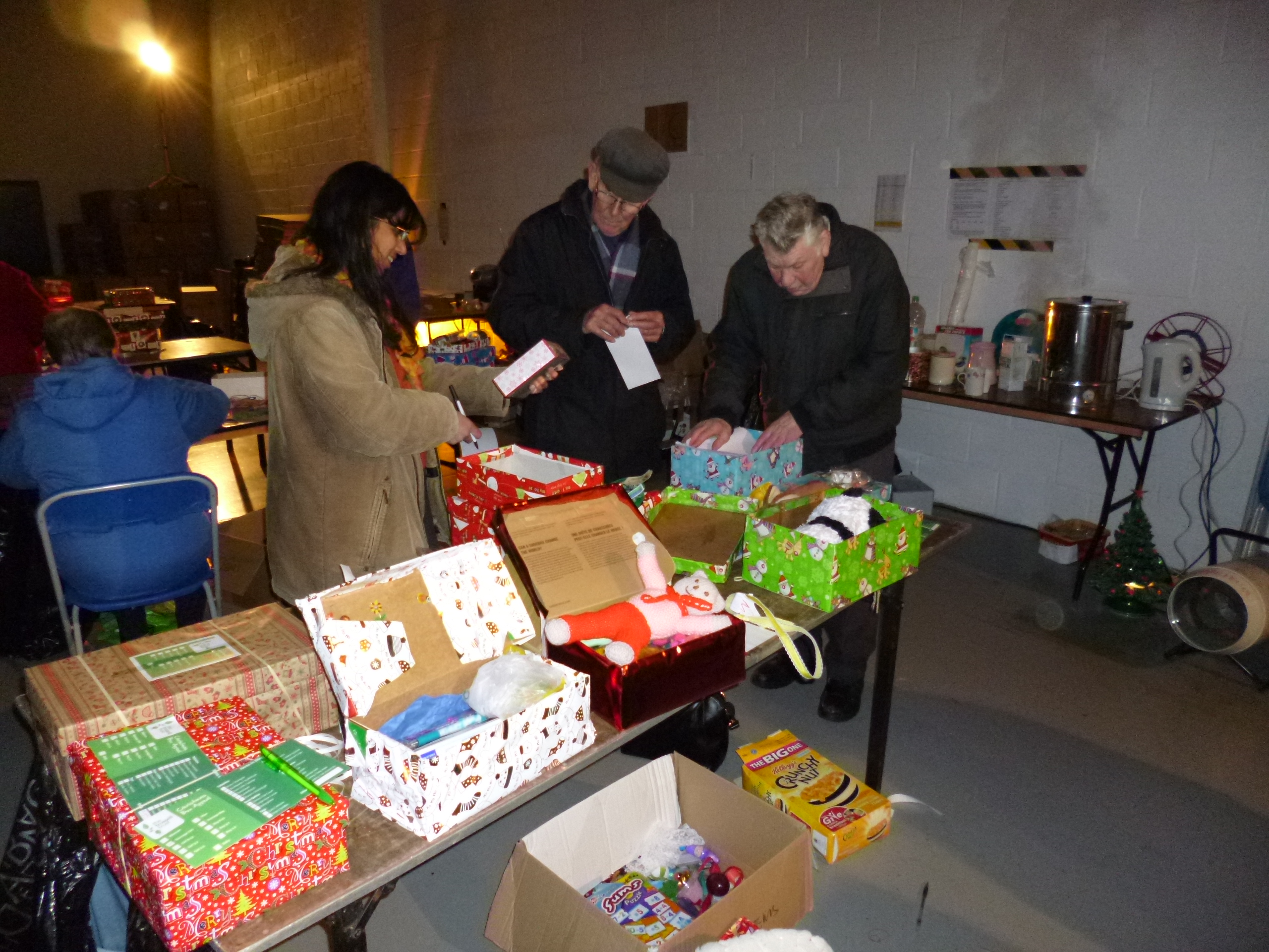 Our housegroup were then checking Christmas boxes on Thursday evening, instead of the usual meeting. Checking the boxes involves ……..