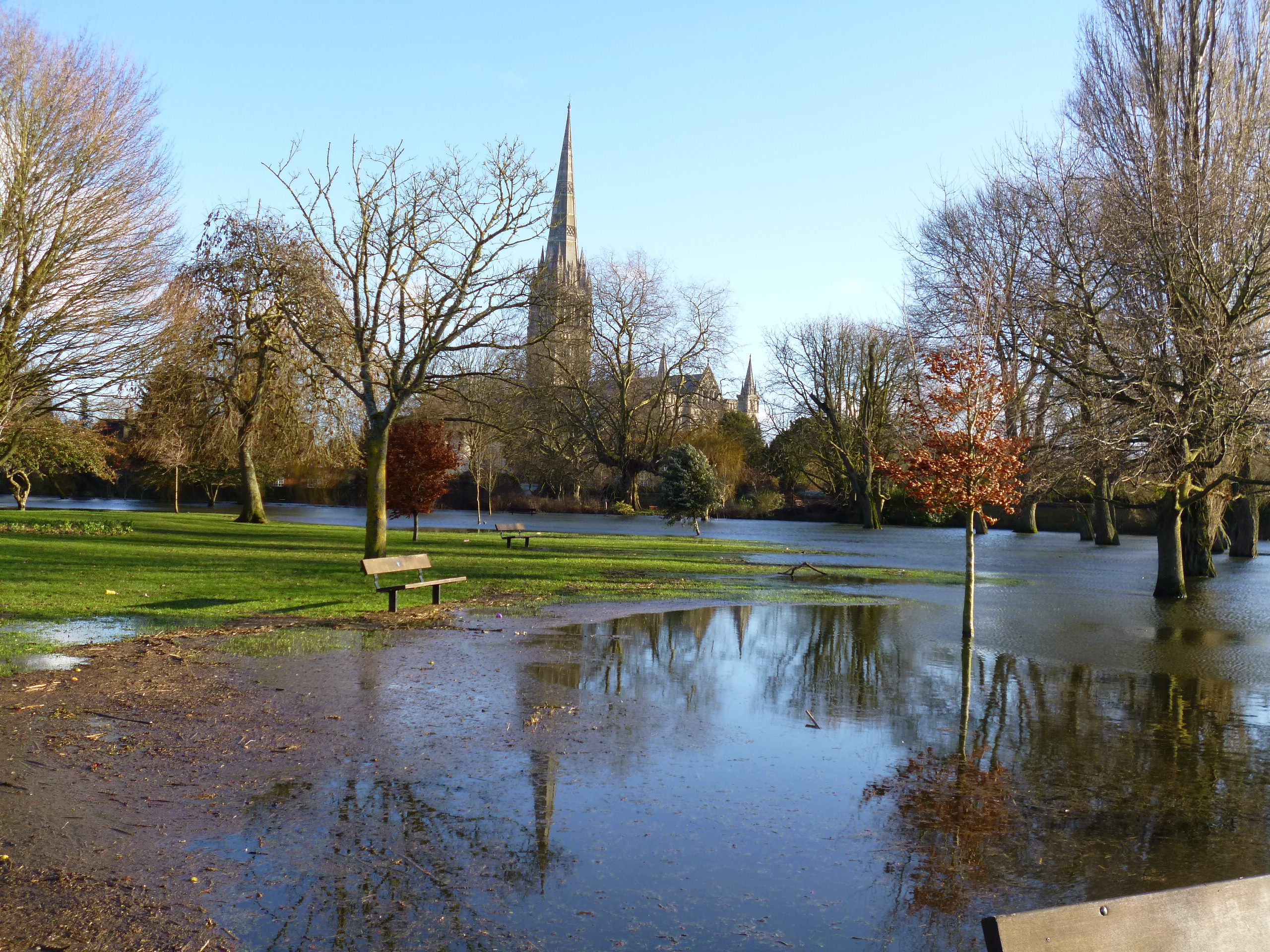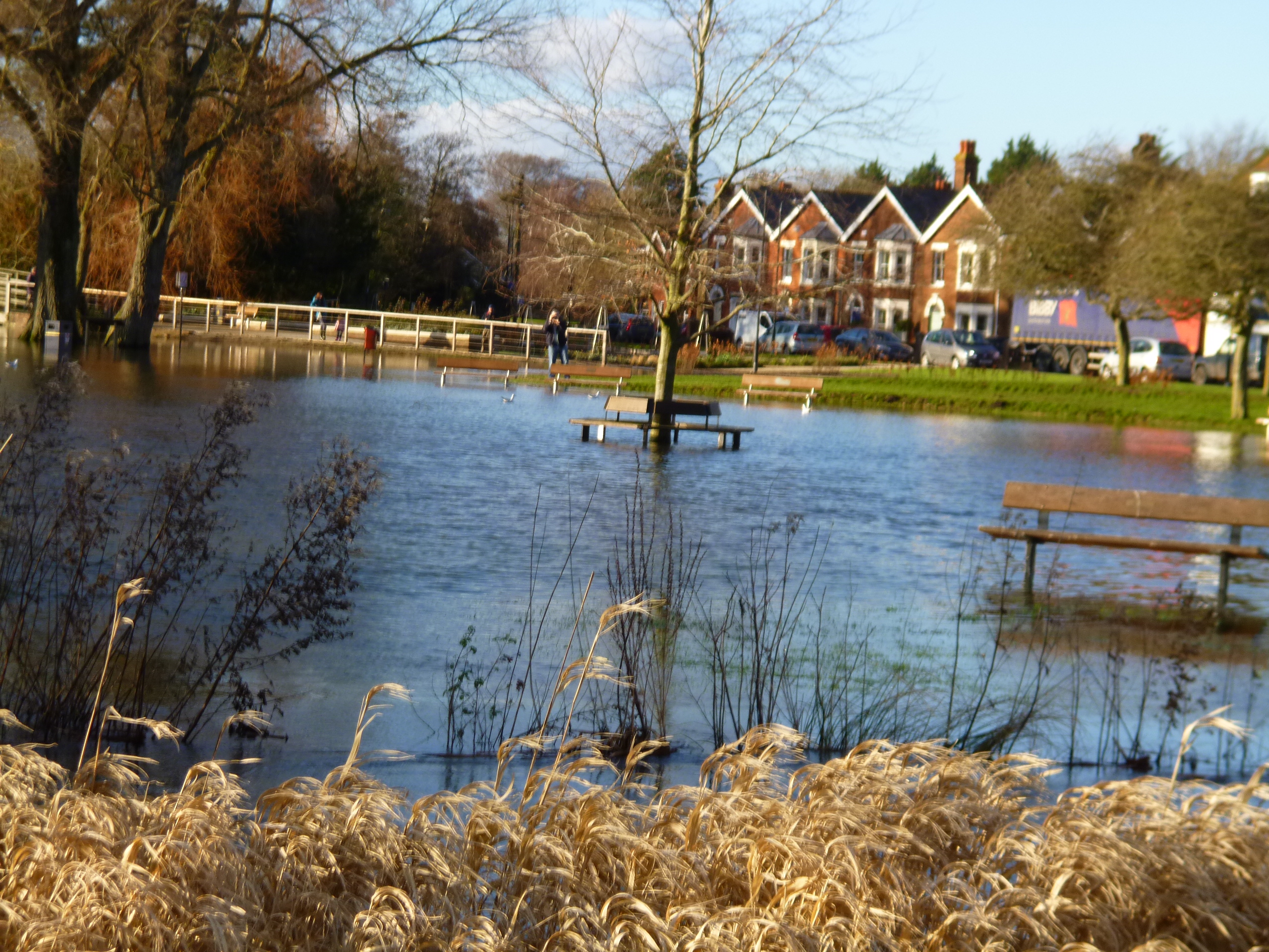 There are 5 rivers locally – the Avon, Bourne, Ebble, Nadder and Wylye – so the flooding after all the rain is not surprising.  As they all flow into the Avon I imagine it must be bad downstream, although the sluices do control how much water is released and where – to a certain extent.  Lizzy Gardens is where various bits of the Avon and the Nadder combine, so it is not that surprising that it flooded.