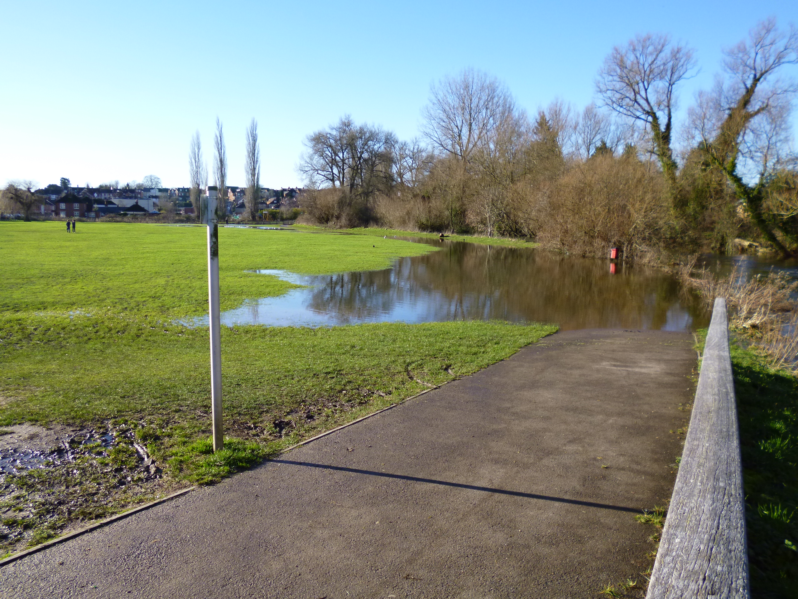 Looking across Elizabeth Gardens and the river to the water meadows – this is what the water meadows are for!