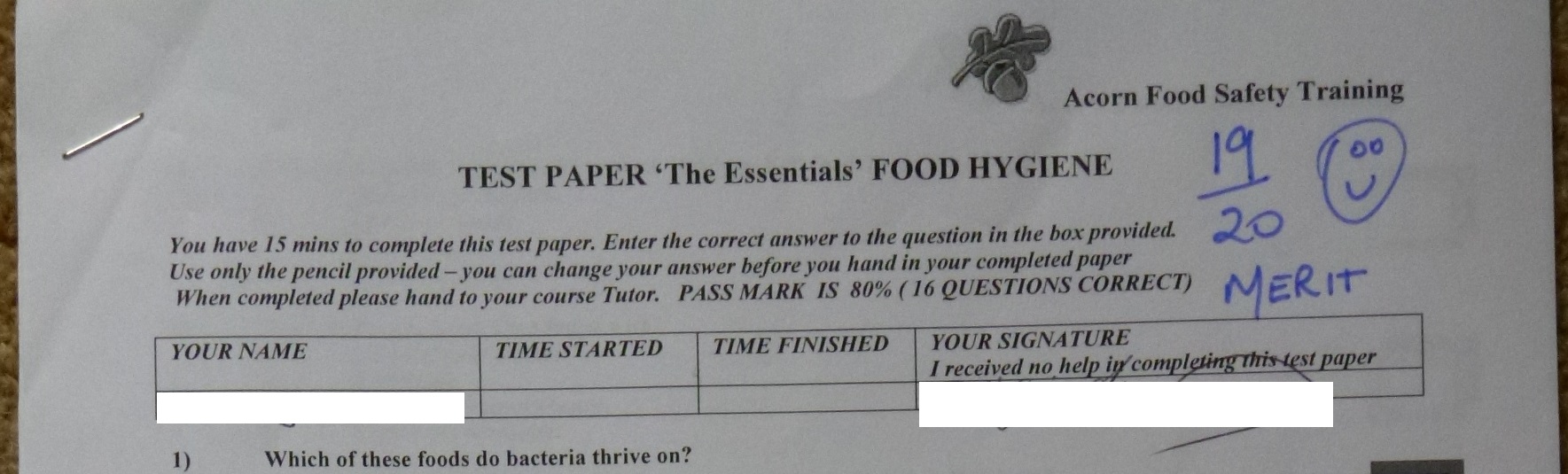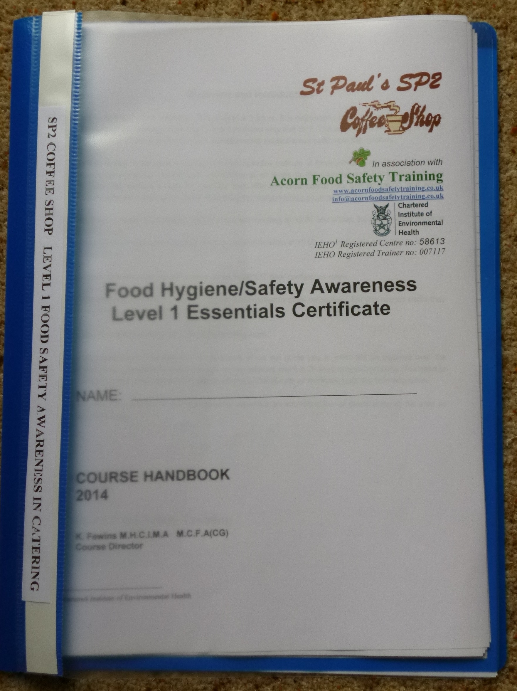 So was it a good thing?  Probably.  I guess it reminded us of things we ought to do in the café even though we never do them at home.  And I will get another certificate to show off.  Pity it only says “Merit” and not “Distinction” though.