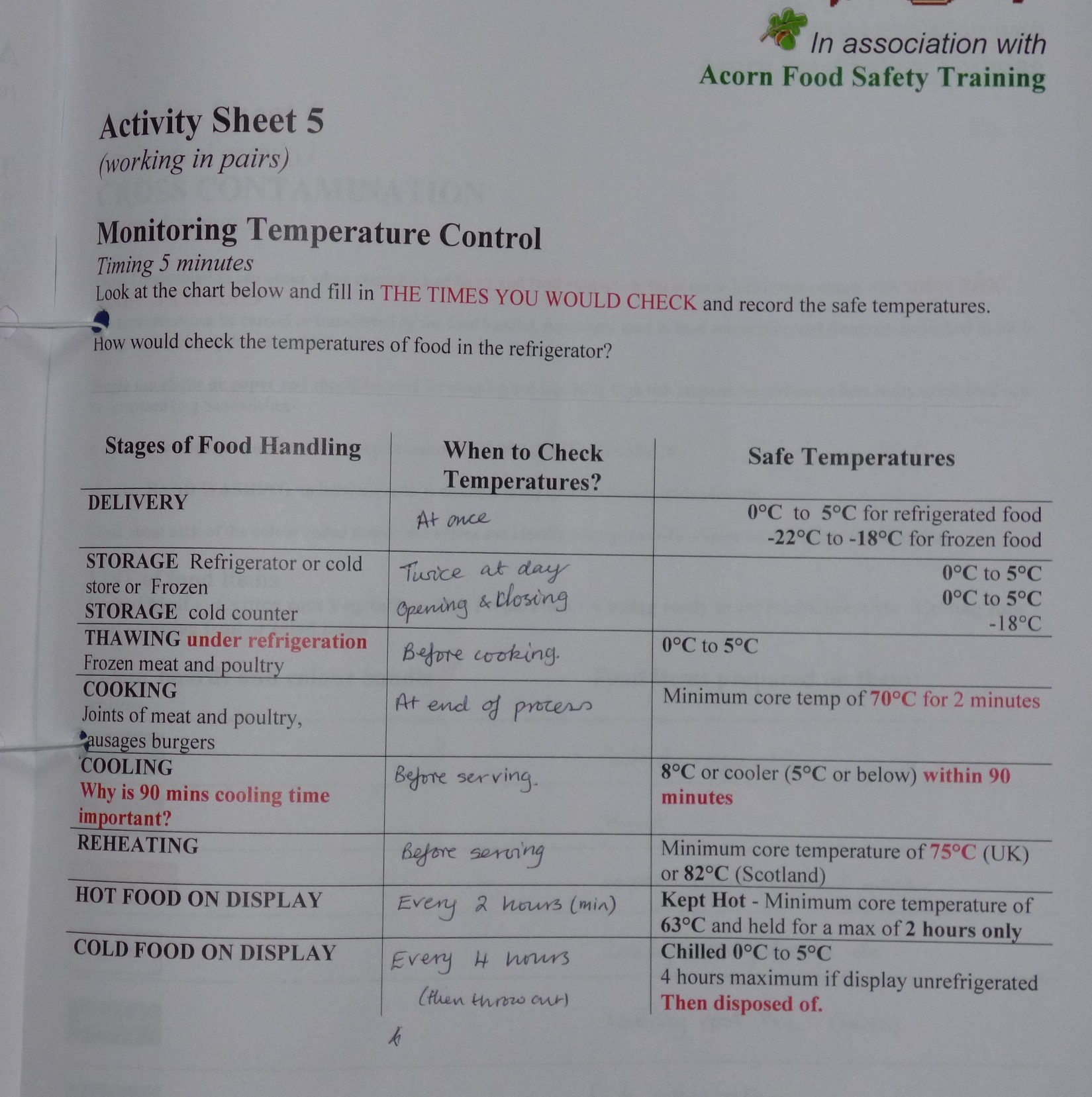 In fact it was fairly informal, especially as most of us knew each other, but we were given the information needed.  This included horror stories of poor practice in several of the local eateries, so that one was put off ever eating out or getting a takeaway!  It did help to emphasise the points, though.  The video of a man supposedly working in a food environment caused several disgusted noises from us, the participants, but also got the points across.  We even made some notes…..