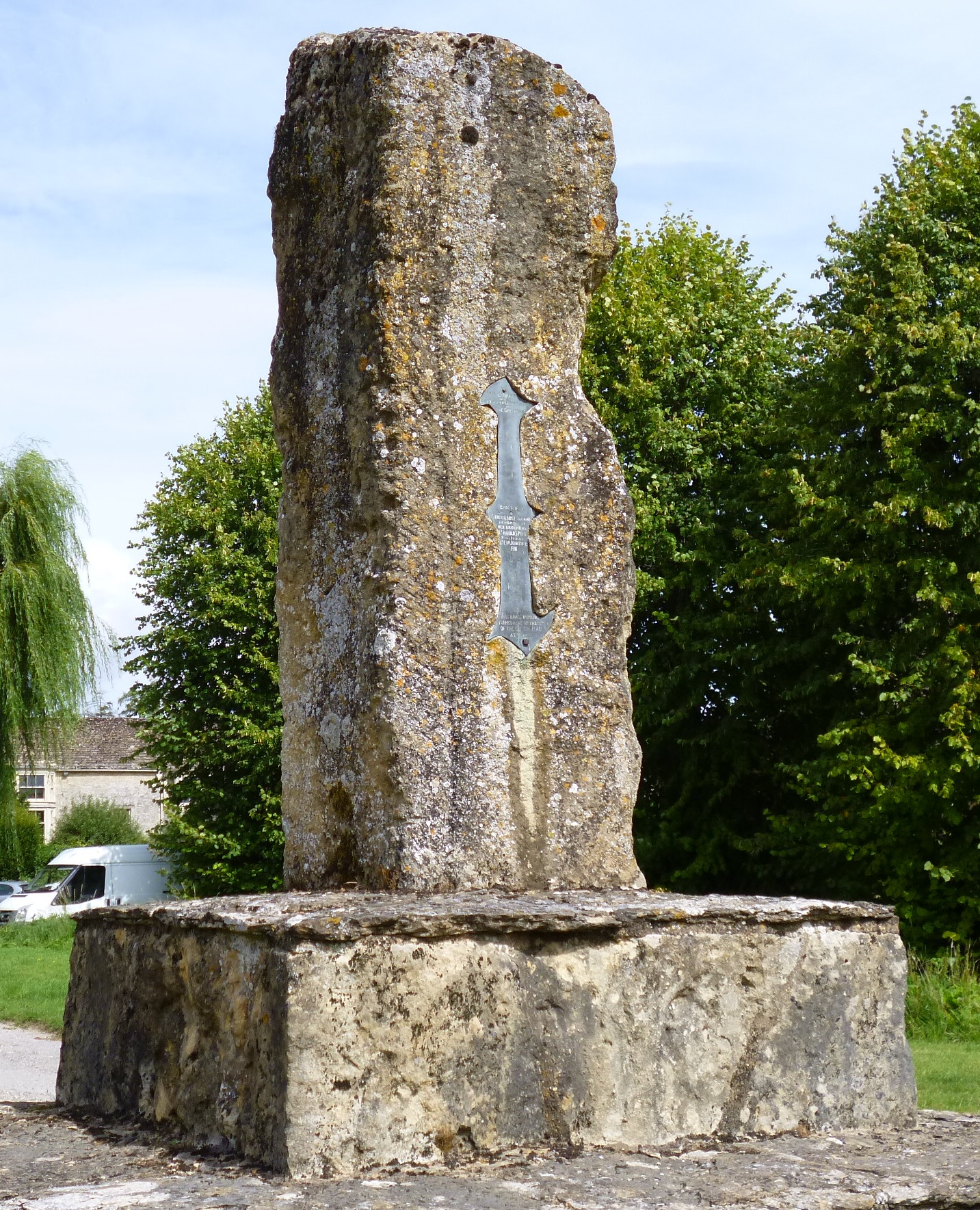 ……is supposed to represent a roll of wool and indicates the tomb of a wool “baron”. We walked on to the village of Holwell, but instead of looking in the church had a look at the war memorial. It apparently contains the number one taken form the clock at, I think, Ypres.