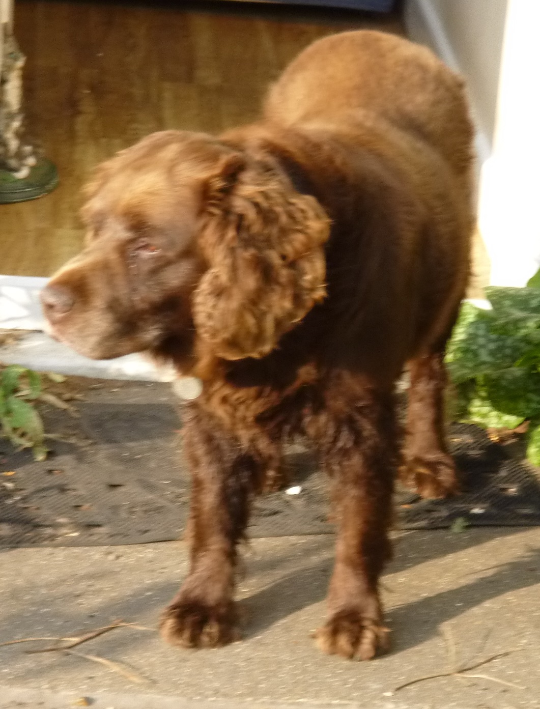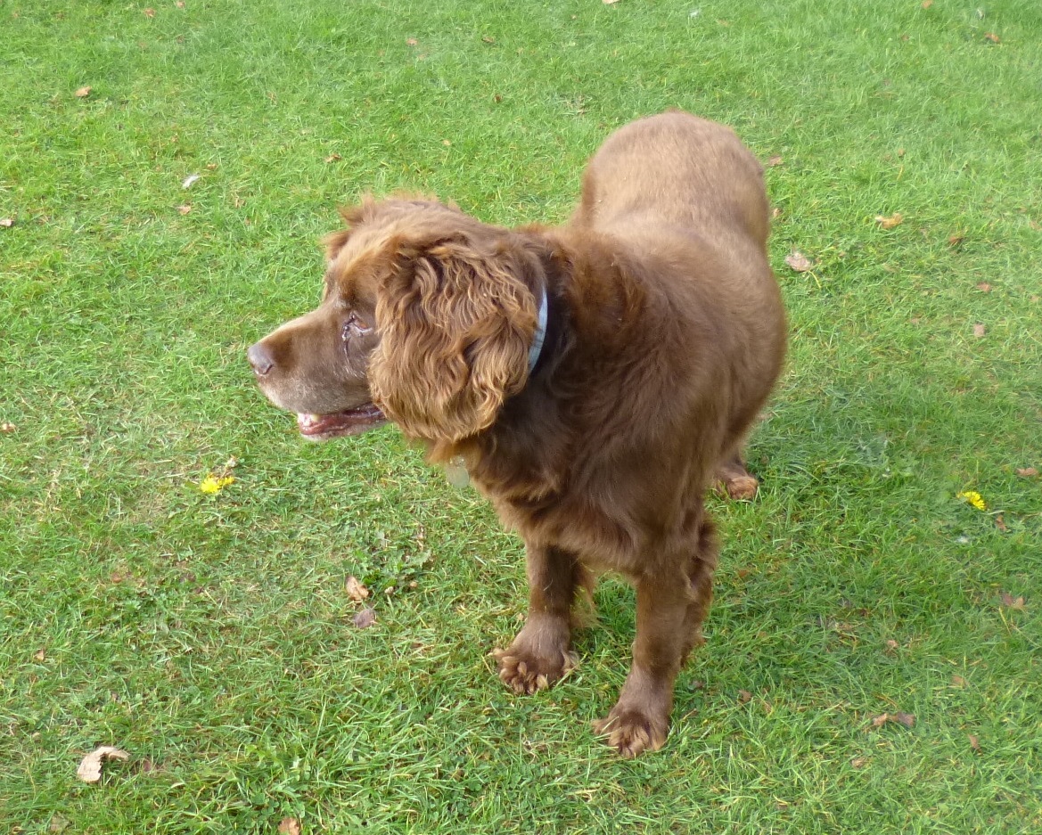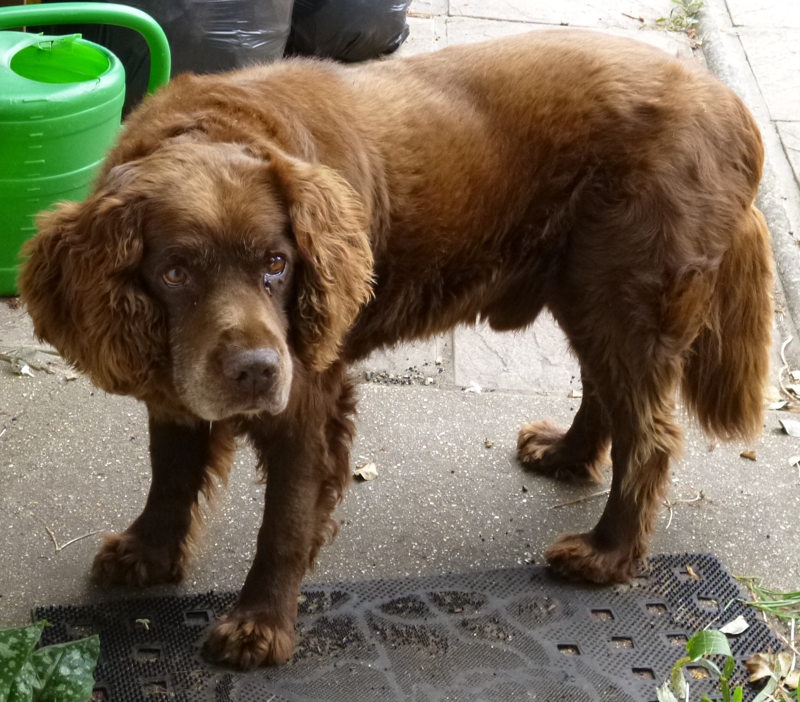 Recently he has not been able to go very far and as a result of his previous stroke his back legs have been giving way so he finds himself sitting down – when he looks surprised and a bit sheepish. He scrambles up and keeps going, though. He has been starting to look as if it is “Oh, not again” and his owner said it took him ages to get up the other day. We hope it is just the weather but sadly he is quite old.