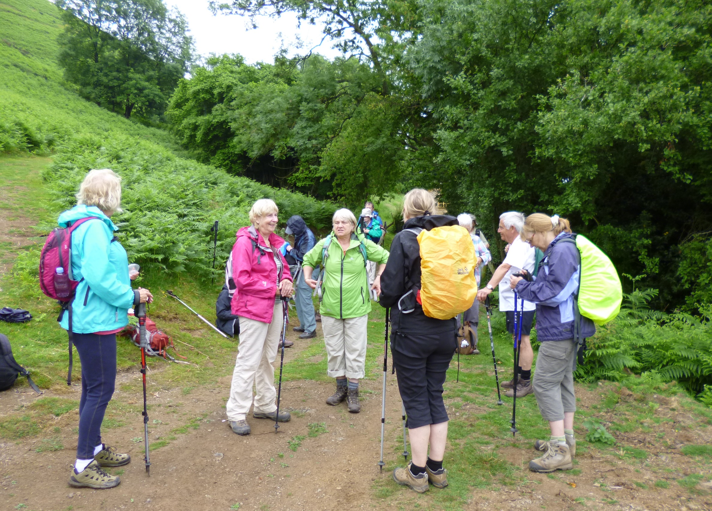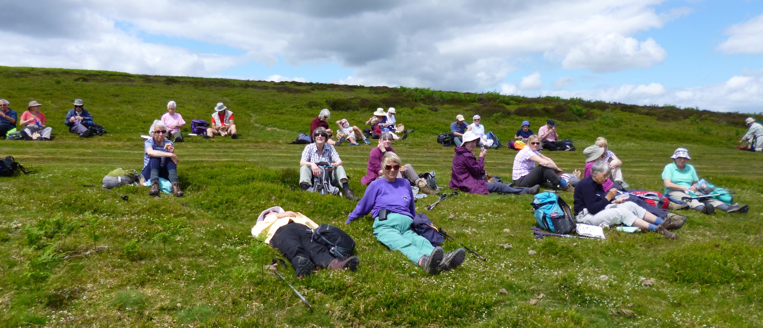 Saturday’s walks started from the house. I went on the easier walks every day and that started last on Saturday. There were so many people on it that it was split into “faster” and “slower” with leaders for each. I went for “faster”. We started by walking down “Rectory Field” and headed onto the Long Mynd by going up the Batch Valley.