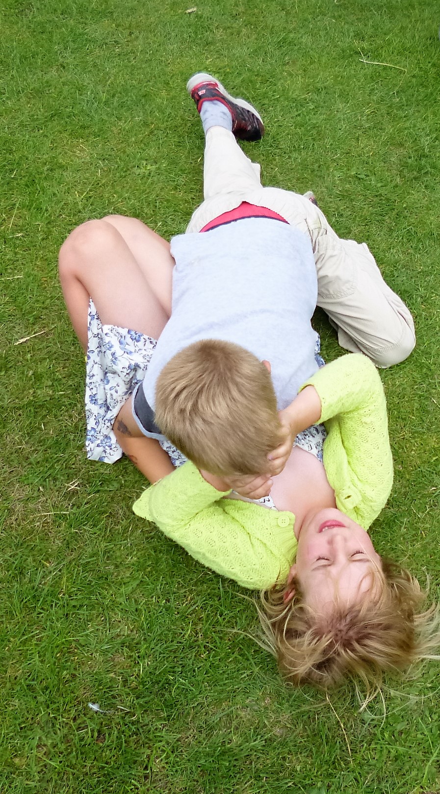 We then went back to flying kites, but on the way the children were playing at being dogs (interesting as they, especially great-niece, are nervous around them). I think it was because there are so many dogs there – a very popular dog walking area. They were also…..