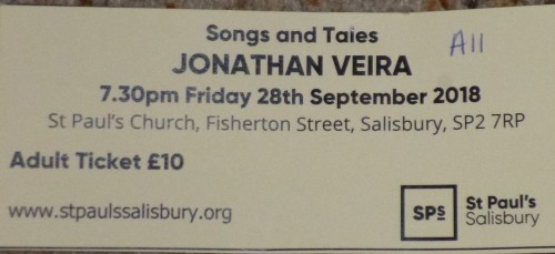 Having seen him before, when he performed with his sons, I was keen to see Jonathan Veira again. He used to be an opera singer but does various things now. When I heard he was coming again I bought a ticket.