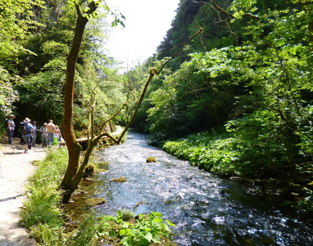 Most of the rest of the walk was then along the river Dove – and walking beside a river is always lovely in the sunshine. We passed several interesting features – the Dove holes, Ilam rock and Lion rock were some of them.